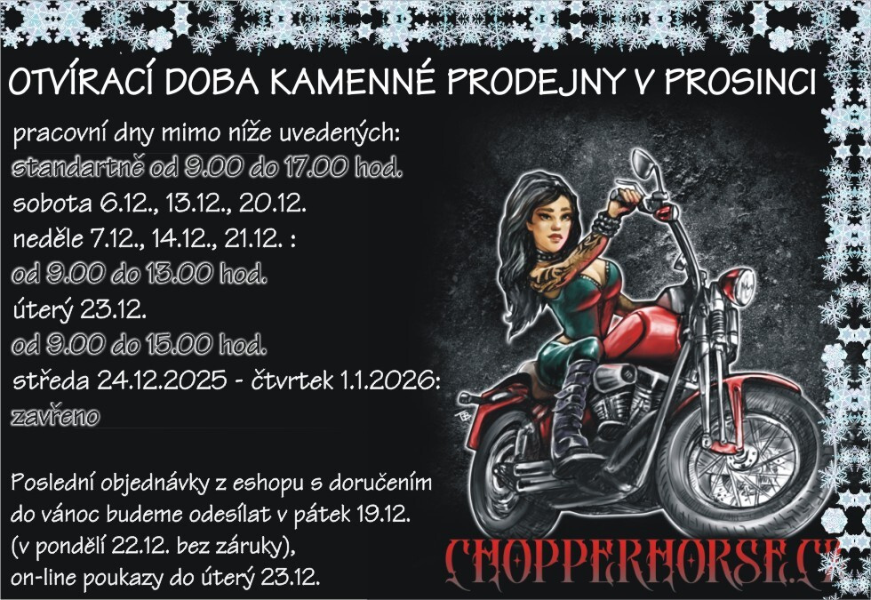 Otvírací doba kamenné prodejny v prosinci bude následující: