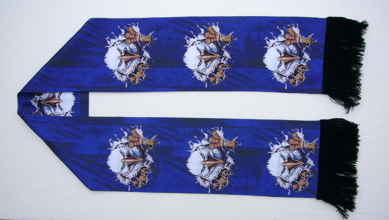 Šála s potiskem. Šála je upletena v české republice patentovanou technologí a poté potištěna, díky čemuž lze docílit vysoké kvality a rozlišení grafiky. Potisk není omezen počtem a odstíny barev.